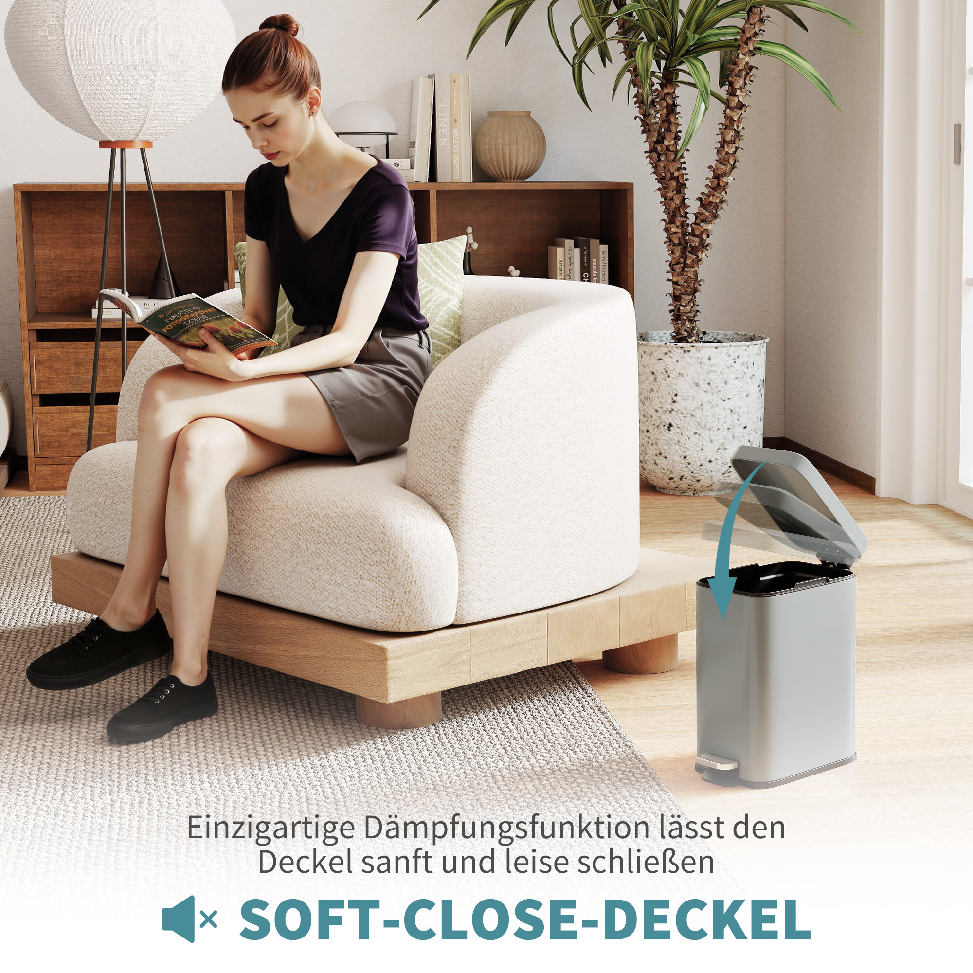 • Innenbehälter: Vollständig herausnehmbar, für ein schnelles und einfaches Entleeren, Mit einem oberen Griff zum Herausnehmen, Einfach zu bedienen öffnet, leise und im Handumdrehen den Deckel - Sie müssen also nichts anfassen,