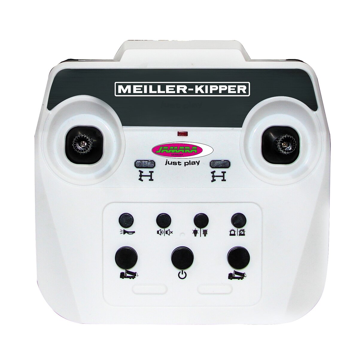 Im Original ist der leistungsstarke Muldenkipper Mercedes-Benz Arocs darauf ausgelegt, schwierigste Einsätze mit Leichtigkeit zu meistern. Keine Aufgabe ist ihm zu schwer. Ausgestattet mit langlebigen Komponenten arbeitet der Mudenkipper härter und länger – und punktet dabei mit einer überragenden Transportleistung. Jetzt kommt dieses Modell als hochwertiger, ferngesteuerter Metall-Muldenkipper im Maßstab 1:20 von JAMARA auf die Mini-Baustellen. Der Muldenkipper Mercedes-Benz Arocs Metal Meiller 2,4GHz ist offiziell Lizensiert und ist neben der kraftvollen Kippmulde (bis zu 15 kg Last), realistischem Motorsound, Rückfahrwarnton und kräftigem 4 Radantrieb, bestens ausgestattet um die Bauarbeiten zu unterstützen. Die ergonomische 2,4 GHz Fernbedienung ist dabei gleichzeitig die Kommandozentrale. Vor, zurück, links, rechts und die Kippmulde hoch und runter, Hupe und Sound alles in der Hand und leicht bedienbar.