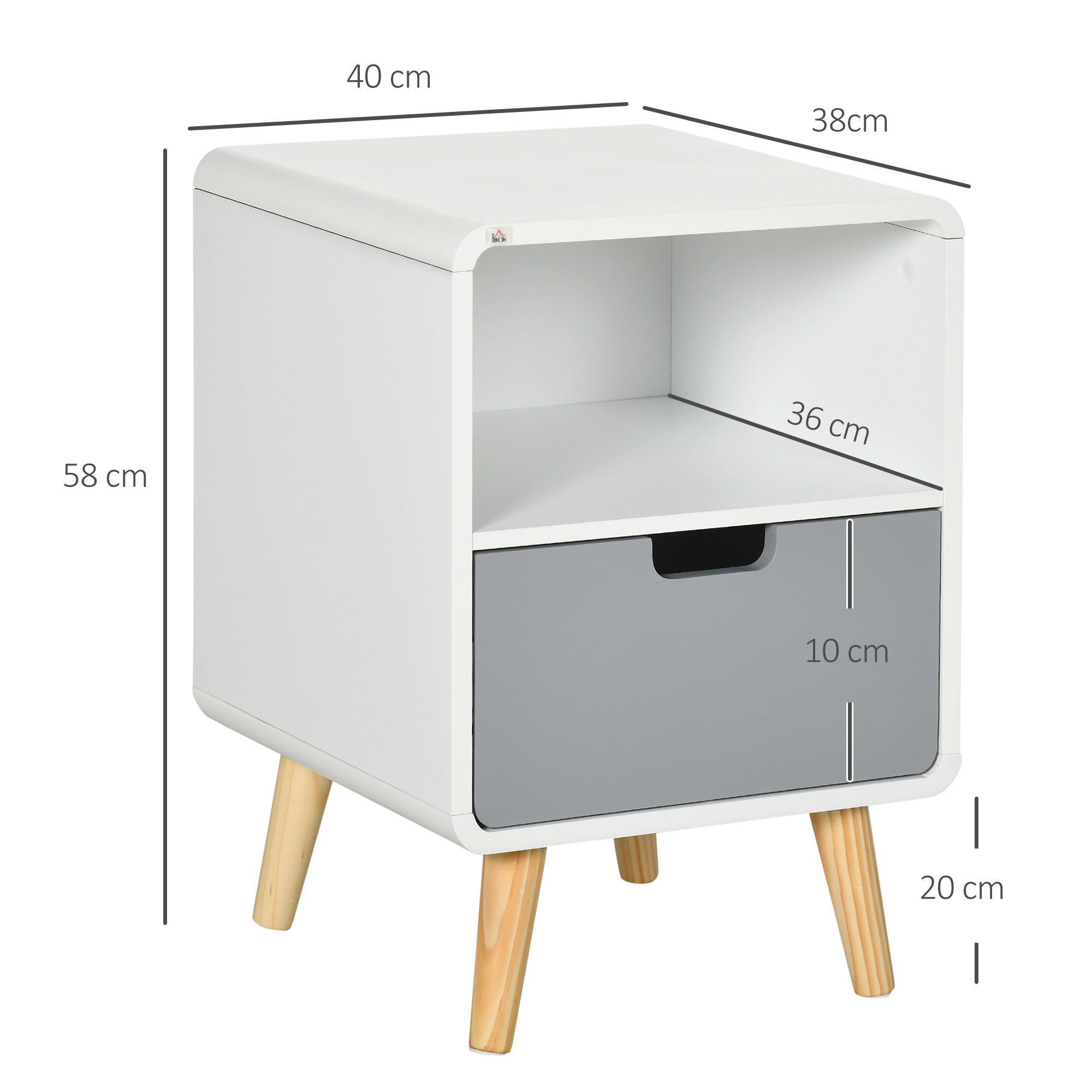 Die klaren Linien dieses Nachtschranks von HOMCOM verleihen Ihrem Interieur ein frisches, modernes Ambiente, Mit einer geräumigen Schublade und einem offenen Staufach ist dieser Nachttisch der perfekte kleine Helfer neben dem Bett, Sein schlichtes Design des Beistelltisches macht ihn jedoch auch vielseitig einsetzbar und passt problemlos ins Wohnzimmer oder andere Räume, Dank der wasser- und schmutzabweisenden Lackierung ist die Reinigung spielend einfach,