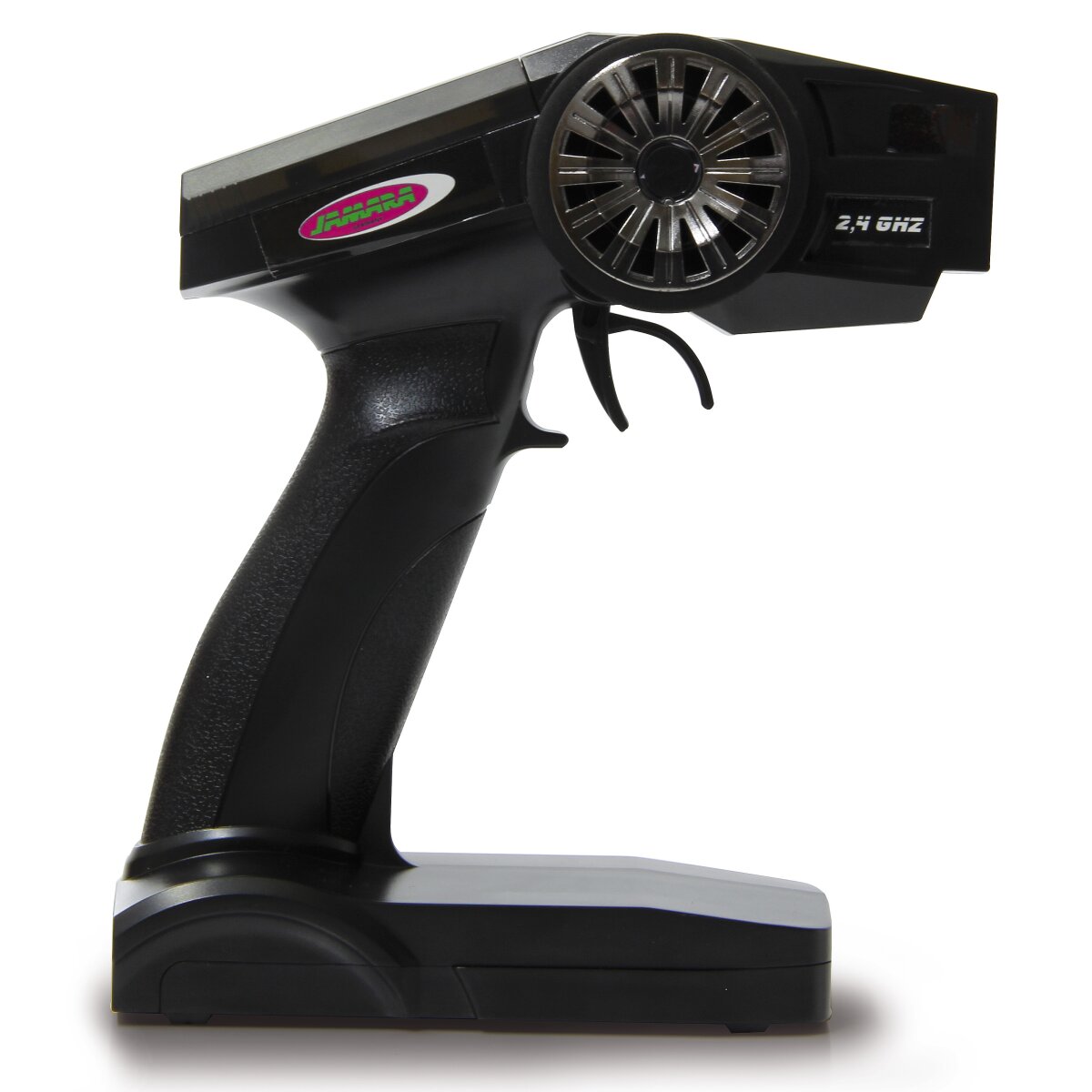 Der Nightstorm BL 2,4GHz E-Monstertruck mit Allradantrieb und Stahldifferentialen vorne und hinten, bulligen Reifen, riesiger Bodenfreiheit, Wheelybar für kontrolliertes Fahren auf den Hinterrädern und Schutz vor Überschlägen, Einzelradaufhängung und kräftigen Stoßdämpfern lassen diesen Monstertruck in jedem Gelände gut aussehen. Beste Verarbeitung von Chassis, Antrieb und Elektronik machen den Nightstorm zu einem echten Geländeprofi und das auch outdoor - denn die Elektronik ist spritzwassergeschützt. Kaum ein Hindernis ist diesem Geländeprofi zu steil, kein Sprung zu spektakulär. Der neue Maßstab von JAMARA in der Elektroklasse. Kräftiger 3200 KV Bürstenmotor mit bis zu 40000 U/min und aktiv gekühltem Brushless Speedregler, voll einstellbares Fahrwerk, Pivot-Ball Vorderradaufhängung und Beleuchtung mit hellen LED sind nur einige Highlights die den Nightstrom BL Lipo zu einem Musthave in der Monster-Car-Szene machen. Auspacken, Akku laden und los geht die wilde Fahrt mit bis zu 65 Km/H.