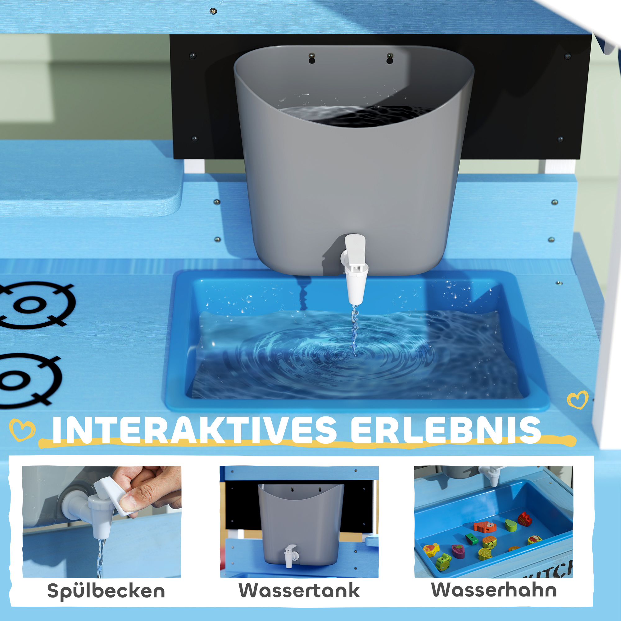 Produktinformationen "Outdoor-Spielküche für Kinder mit Sonnendach, Kochgeschirr-Set, Massivholz, Blau"