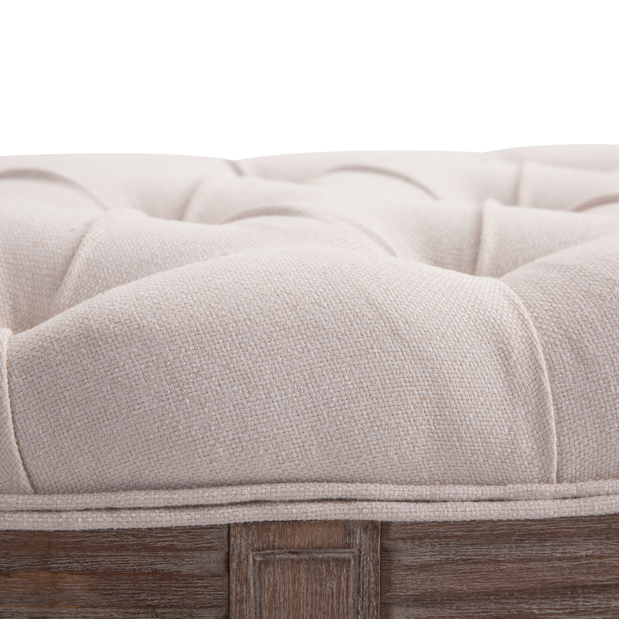 Polsterbank Sitzbank Lounge Sitzhocker Vintage Retro mit Knöpfen Sofa Couch Leinen + Holz beige 140,5 x 51 x 48 cm