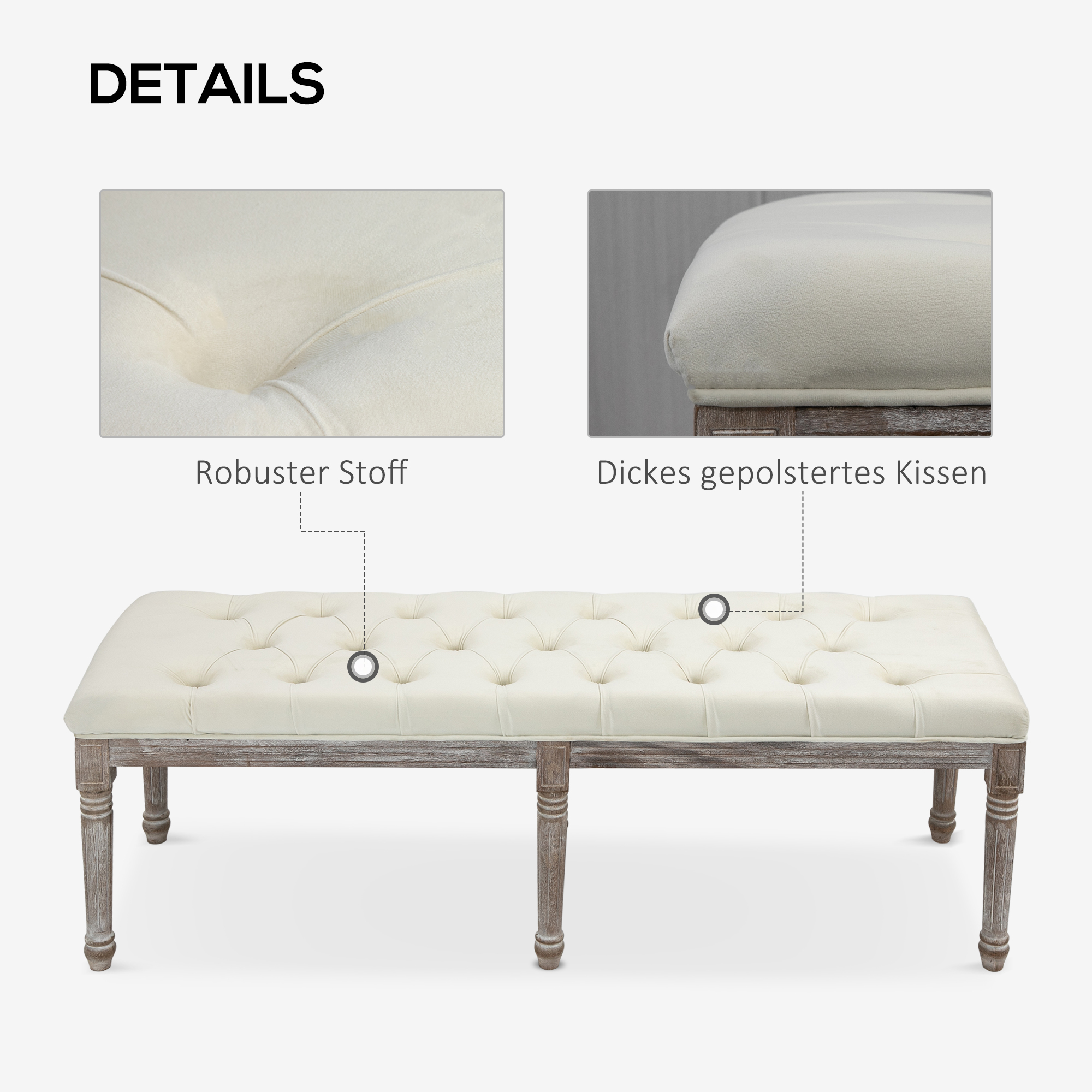 Polsterbank Sitzbank Vintage Bettbank mit Knöpfen Samtige Berührung Gummiholz Beige 142 x 47 x 51 cm