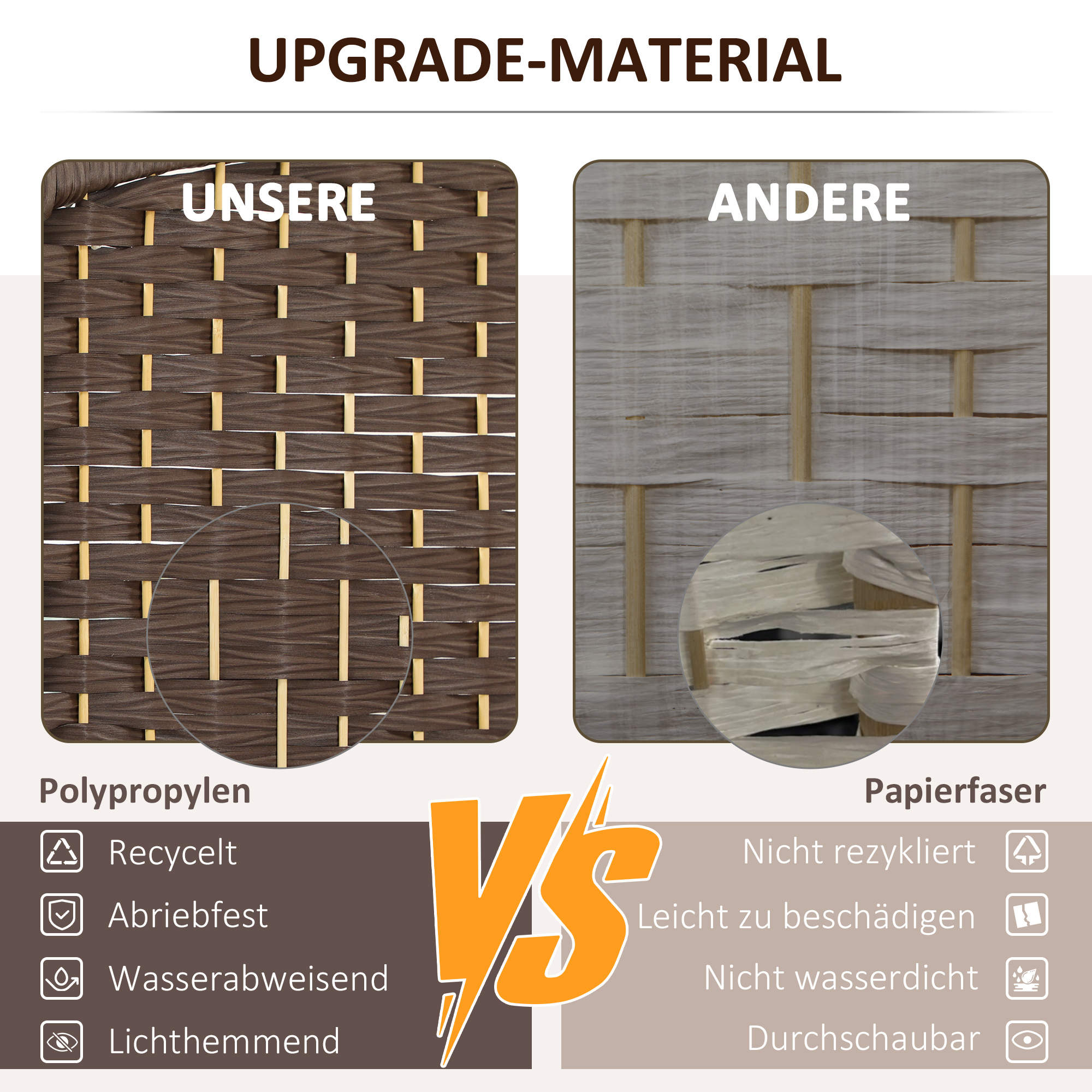Verwandeln Sie Ihren Bereich mit dem HOMCOM Raumteiler, Die Polypropylenkonstruktion sorgt für maximale Privatsphäre und ist stabiler als herkömmliche Papierfasern, Die mobile Wand vereint durch ein elegantes, dreifach faltbares Design und sechs Metallscharniere Funktion mit Stil, Ein Rahmen aus Kiefernholz und Polypropylengeflecht verleiht dem HOMCOM Faltbildschirm einen eleganten Touch,