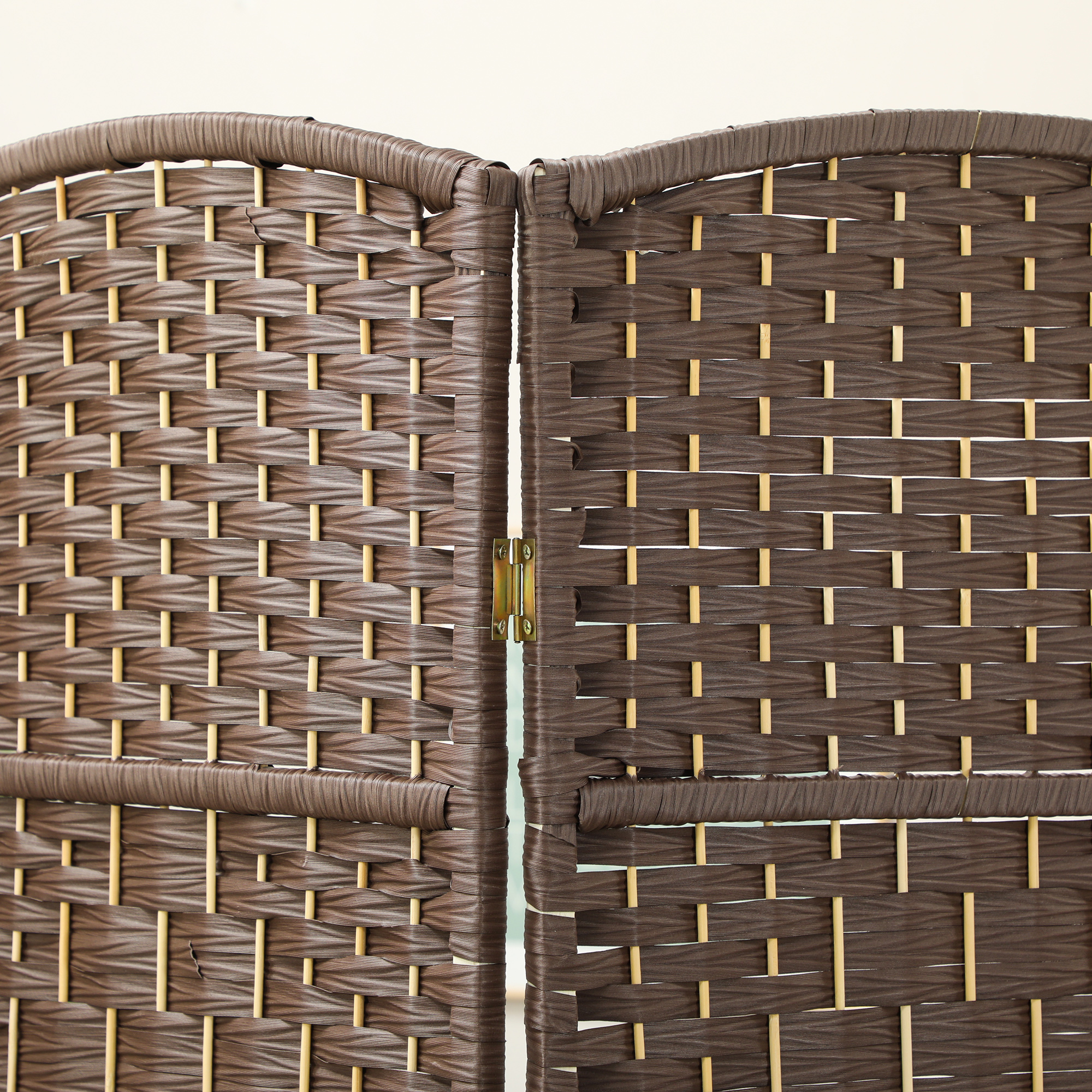 Produktinformationen "Raumteiler, 3-teilig faltbare Trennwand, Geflechtmuster, Kiefernholz, Braun"