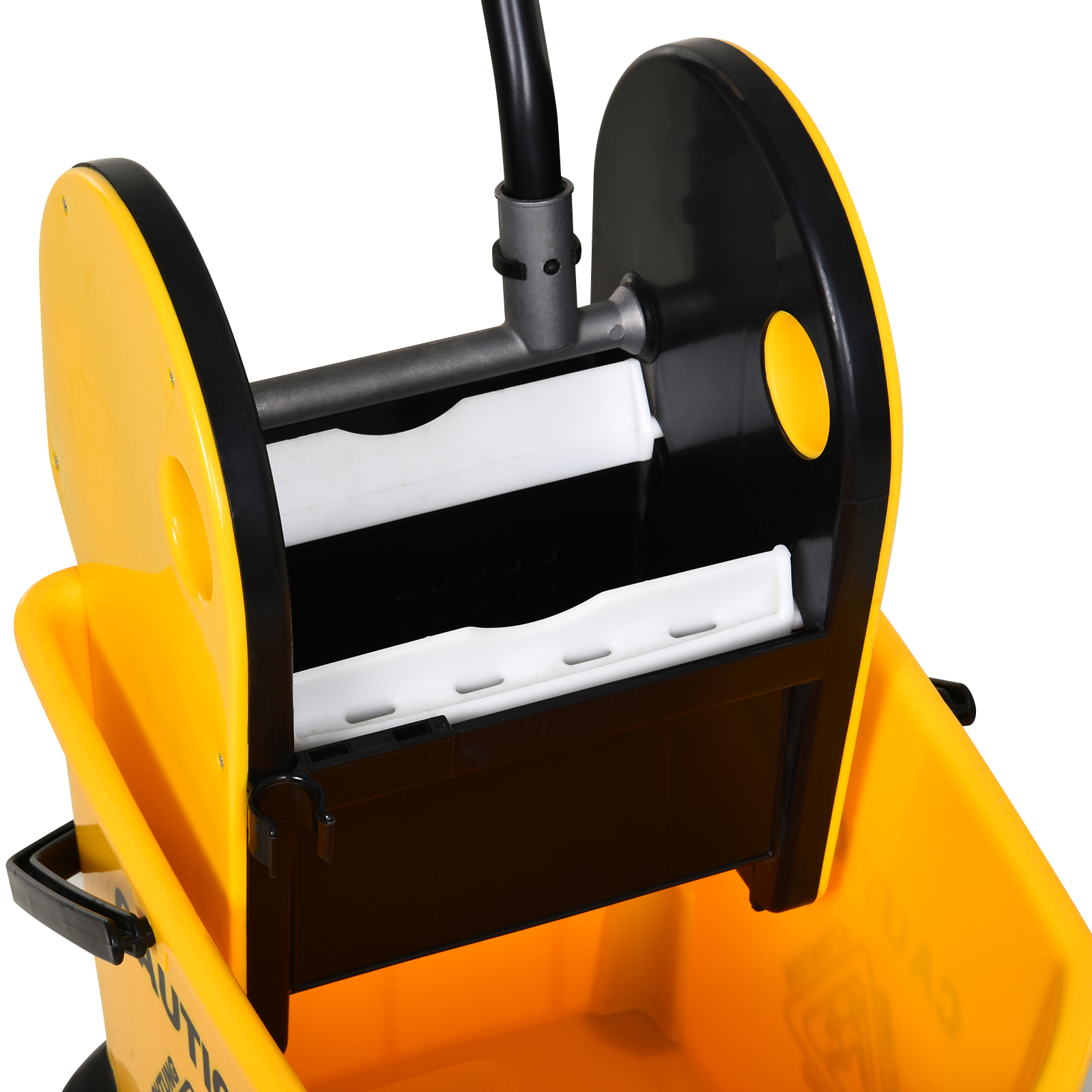 Die praktische Lösung für Ihr Zuhause oder den Einsatz im gewerblichen Bereich: Der Putzeimer mit Rollen und Handgriff von HOMCOM erleichtert Ihnen das Aufwischen einfach überall, Er ist ausgestattet mit einer praktischen Auswringvorrichtung, Die Bedienung ist denkbar einfach und die vier leichtgängigen Rollen sorgen dafür, dass Sie den Putzeimer problemlos hin und her schieben können, Mit diesem praktischen mobilen Putzeimer wird Ihnen die Arbeit noch leichter und sauberer von der Hand gehen! (Hinweis: Im Lieferumfang ist kein Wischmop enthalten,)