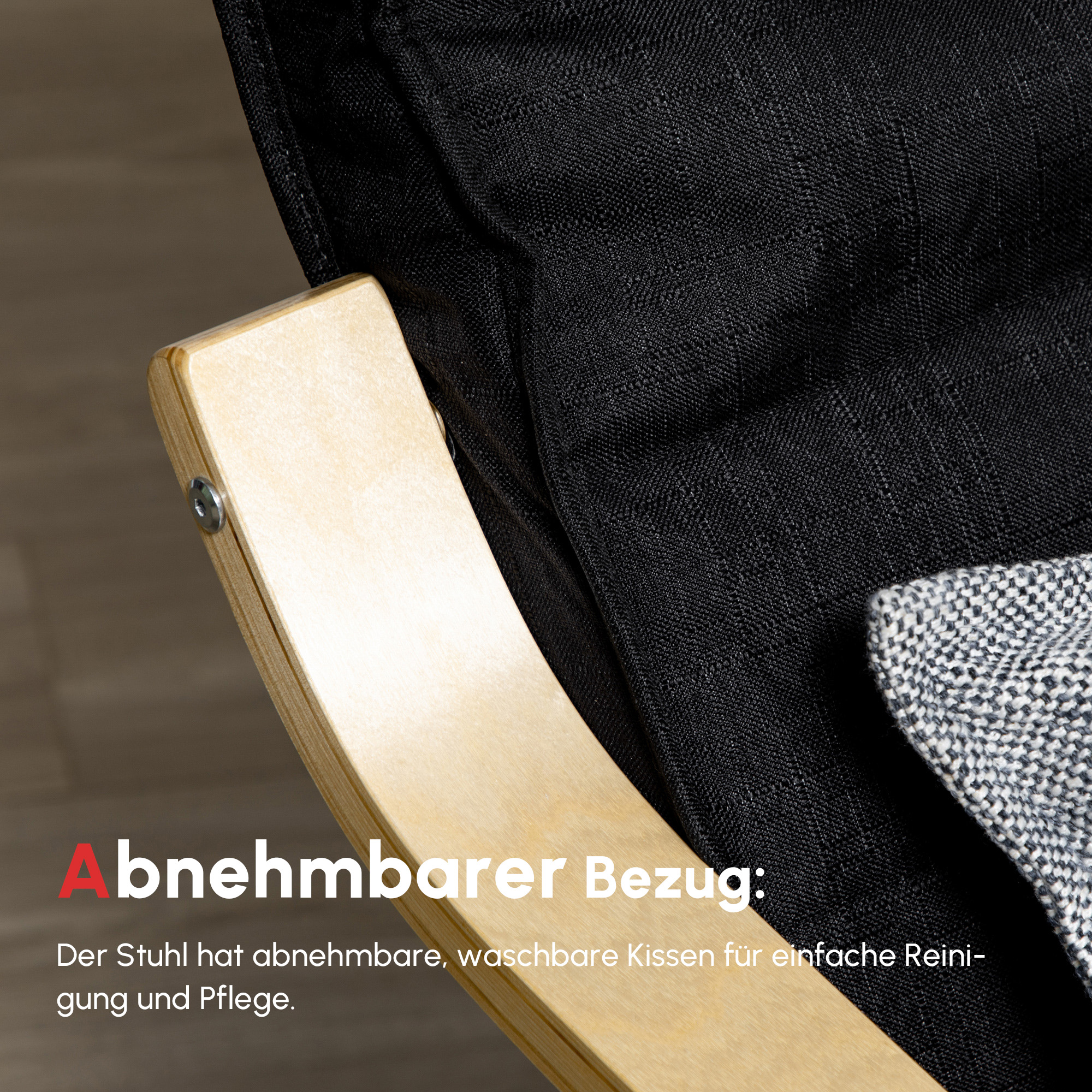 Entspannen Sie sich stilvoll mit unserem eleganten Relaxsessel von HOMCOM, Die harmonische Kombination aus hellem Holz und schwarzem Bezugsstoff verleiht Ihrem Zuhause einen zeitlosen Charme, Genießen Sie die großzügige, gepolsterte Sitzfläche und die sanfte Umarmung des natürlichen Baumwollbezugs, Die fünfstufig verstellbare Fußstütze des Relaxsessels ermöglicht es Ihnen, die Füße hochzulegen und den Moment mit einem guten Buch oder einem erfrischenden Getränk zu genießen - Ihr perfekter Rückzugsort wartet auf Sie!
