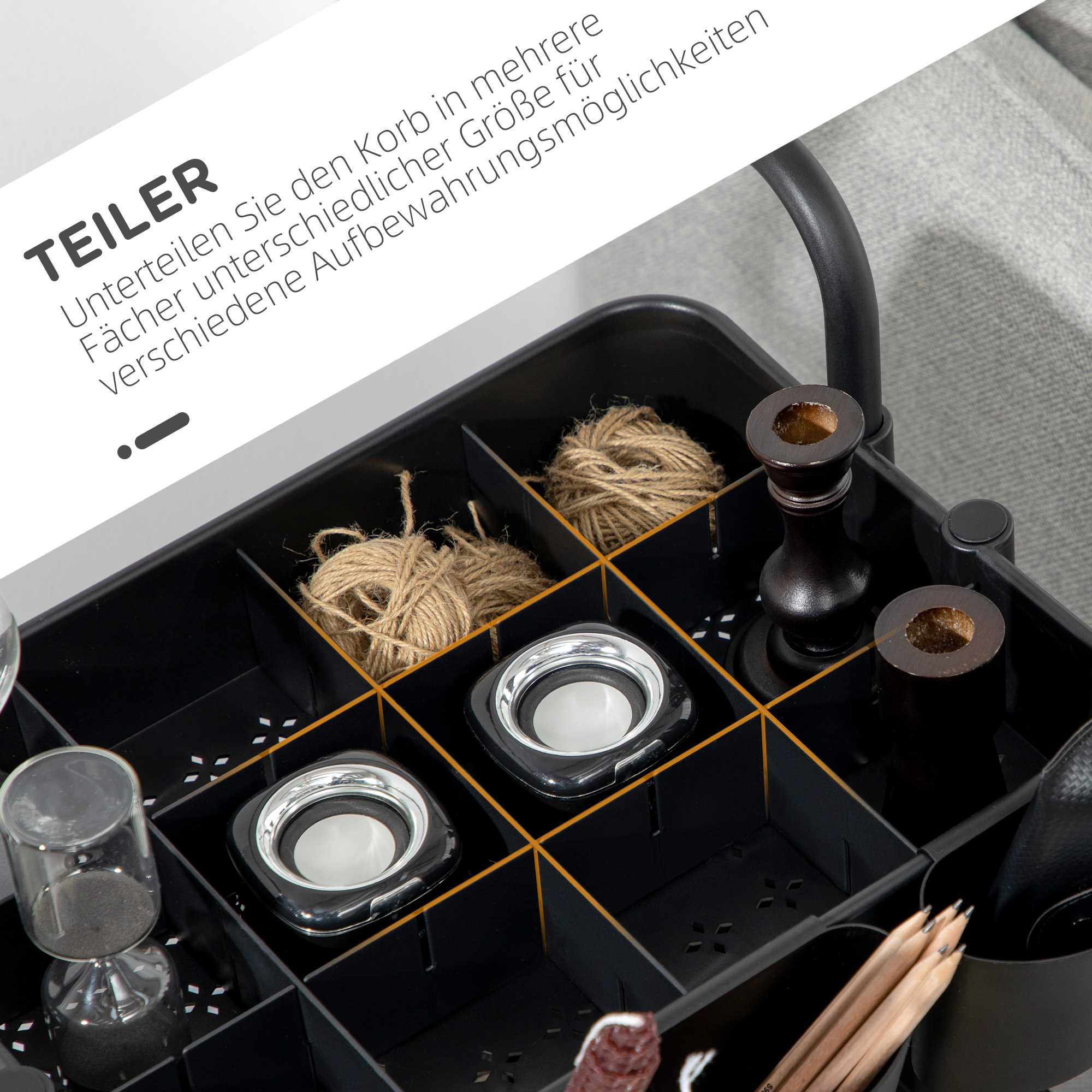 - - Mit 5 Trennwänden können Sie einen Korb in mehrere Fächer unterschiedlicher Größe für verschiedene Aufbewahrungszwecke unterteilen