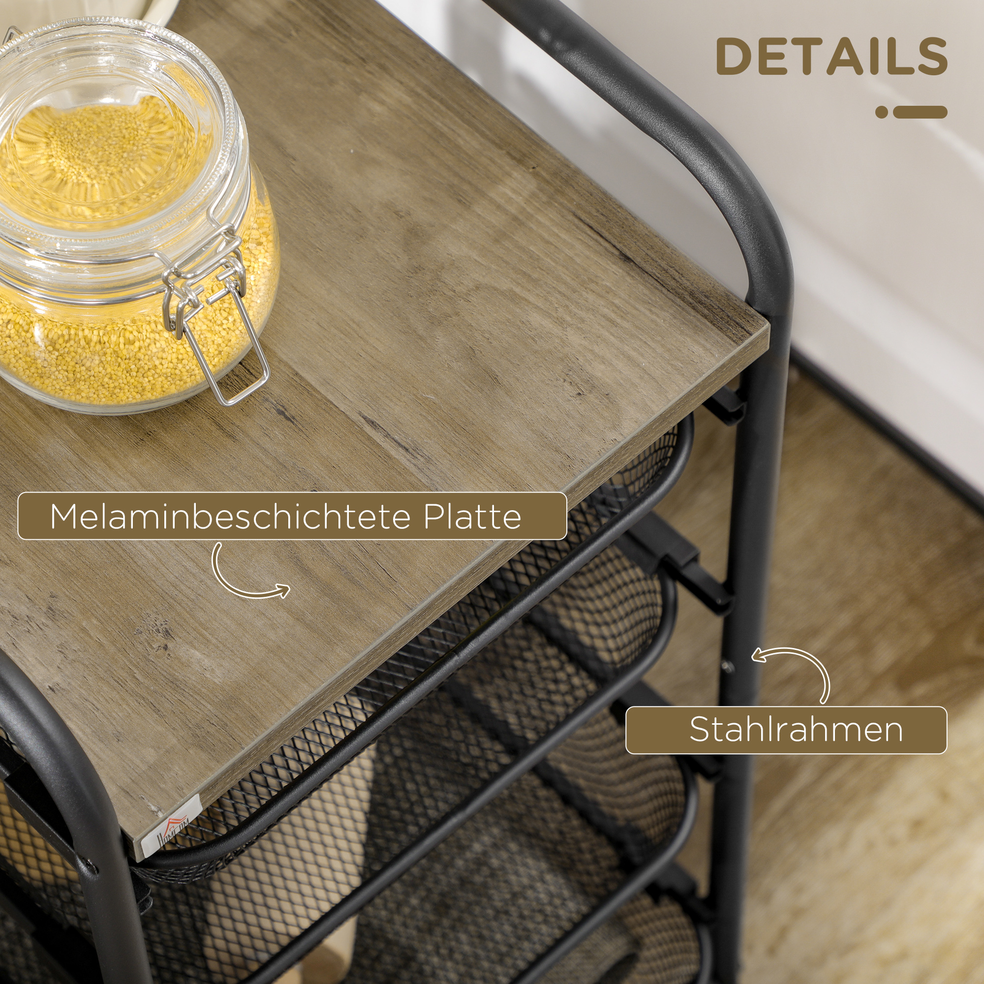Produktinformationen "Rollwagen mit 4 Körben, Küchenwagen, 4 Räder mit 2 Bremsen, Allzweckwagen, Schwarz, 41,5 x 31 x 66 cm"