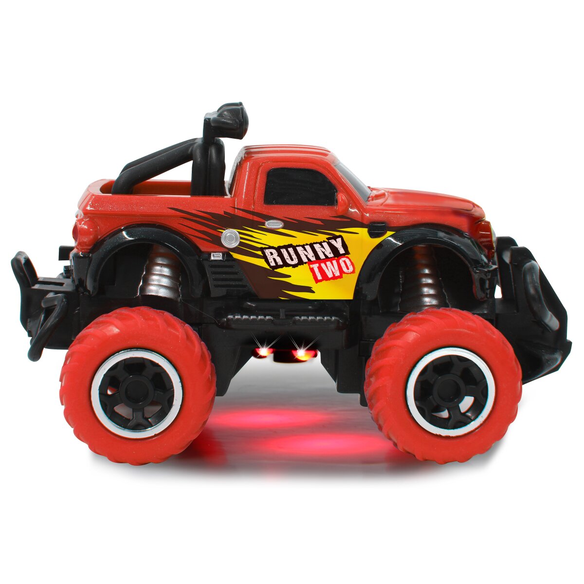 Der Runny Two 1:43 in rot von JAMARA wird alle Kids ab vier Jahren begeistern. Ein kräftiger Motor und ein tolles, extravagantes Design machen diesen Ferngesteuerten Buggy zum Hit auf jeder Rennpiste. Große Gummireifen für optimalen Gripp, großer Rammschutz von und einstellbarer Spurlauf, sprechen die klare Sprache eines echten Spaßgerätes und das bei einer Größe von gerade mal knapp 14cm. Extra starkes Feature ist die Unterbodenbeleuchtung die im Dunklen ein starkes Aussehen auf den Asphalt zaubert.