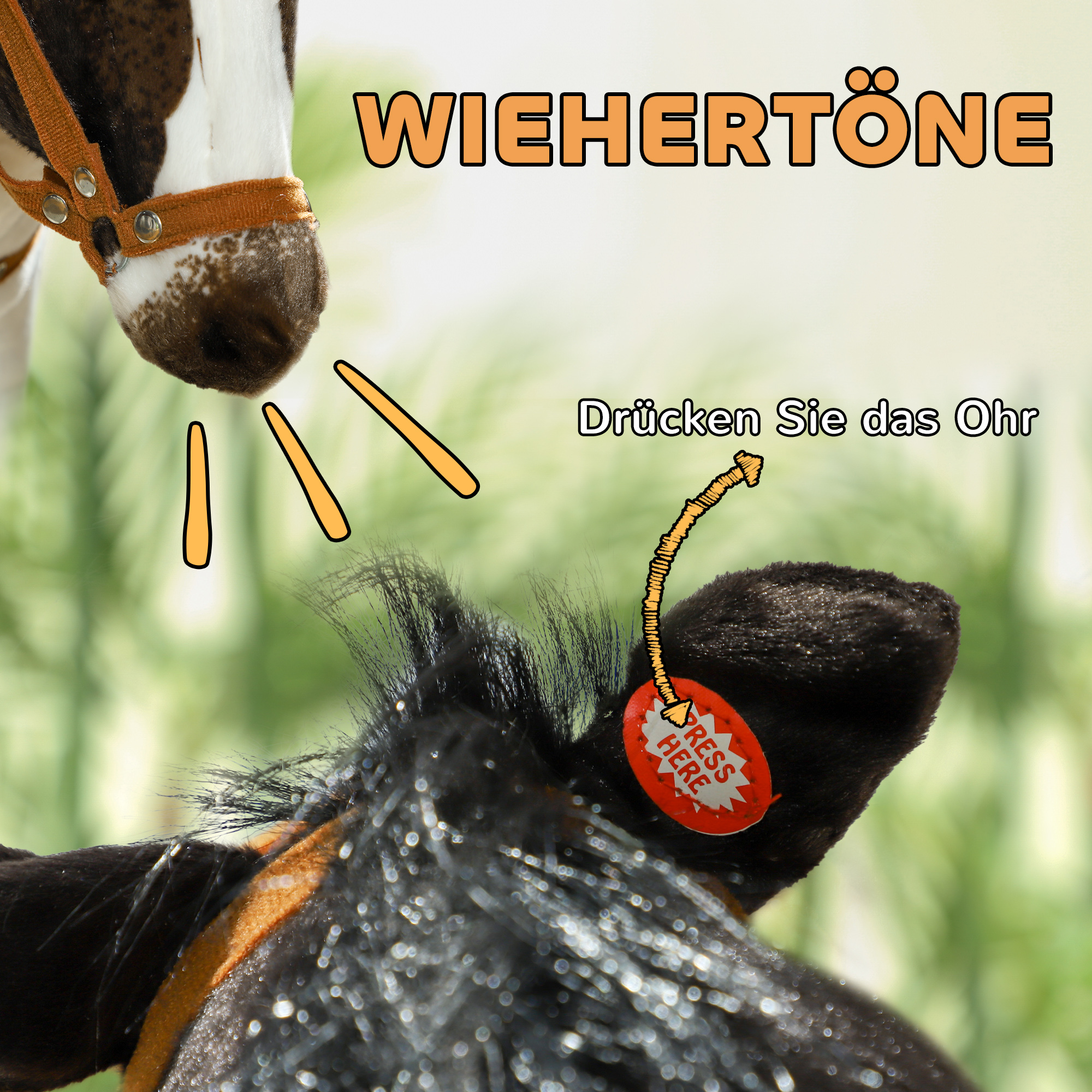 - Interaktive Funktionen: Das Wiehern dieses Reitpferdes, ausgelöst durch 2 x 1,5V AA Batterien, die bereits enthalten sind, wird Ihr Kind sofort begeistern und zum Mitspielen animieren,