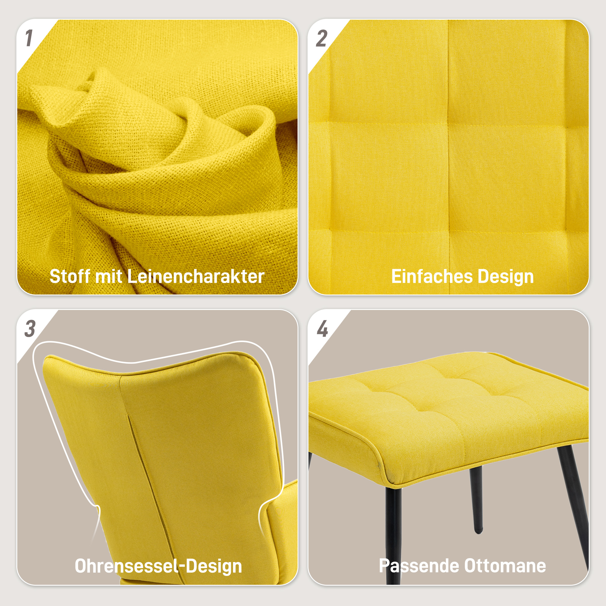Schaukelstuhl mit Ottomane Skandidesign Schaukelstuhl mit Fußhocker, Buchenholz, Steppung, 64 cm x 89 cm x 90 cm Gelb