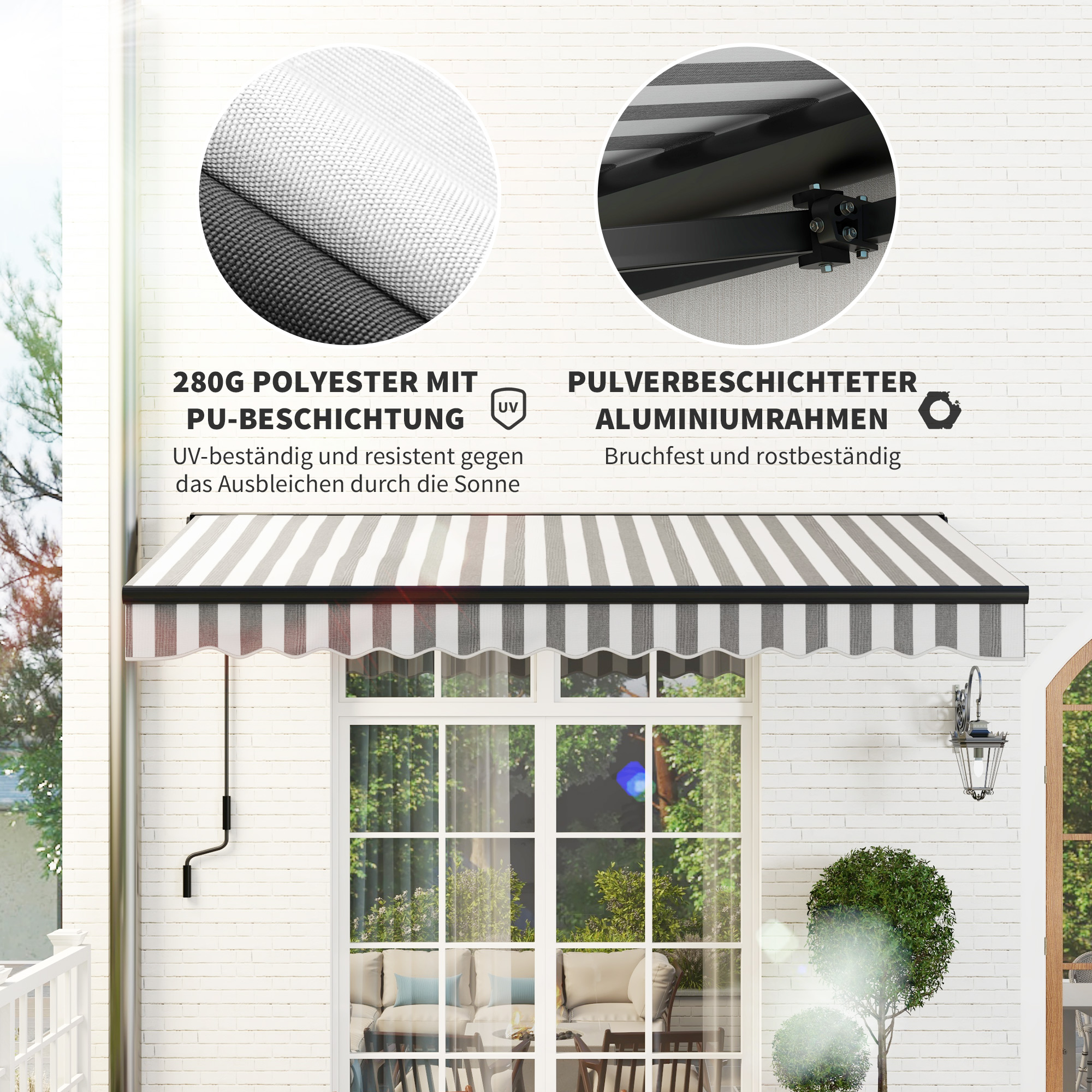 Schützen Sie Ihren Außenbereich sofort und ohne großen Aufwand, Mit der einfahrbaren Markise von Outsunny ist das möglich, Das Gestell besteht aus einer Mischung aus Aluminium und Metall, was es stabil und zuverlässig für den Einsatz im Freien bei jedem Wetter macht, Mit dem mitgelieferten Befestigungsmaterial können Sie diese Balkonmarkise an einer Betonwand, einer soliden Ziegelmauer und sogar an einem Holzzaun, einer Tür, einem Balkon oder einem Fenster anbringen,