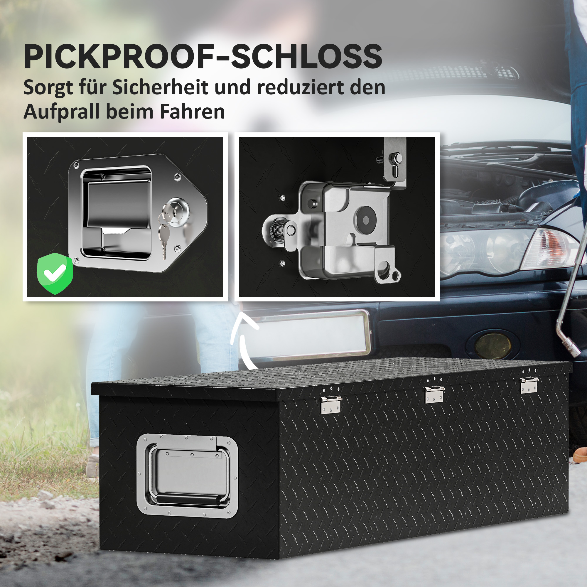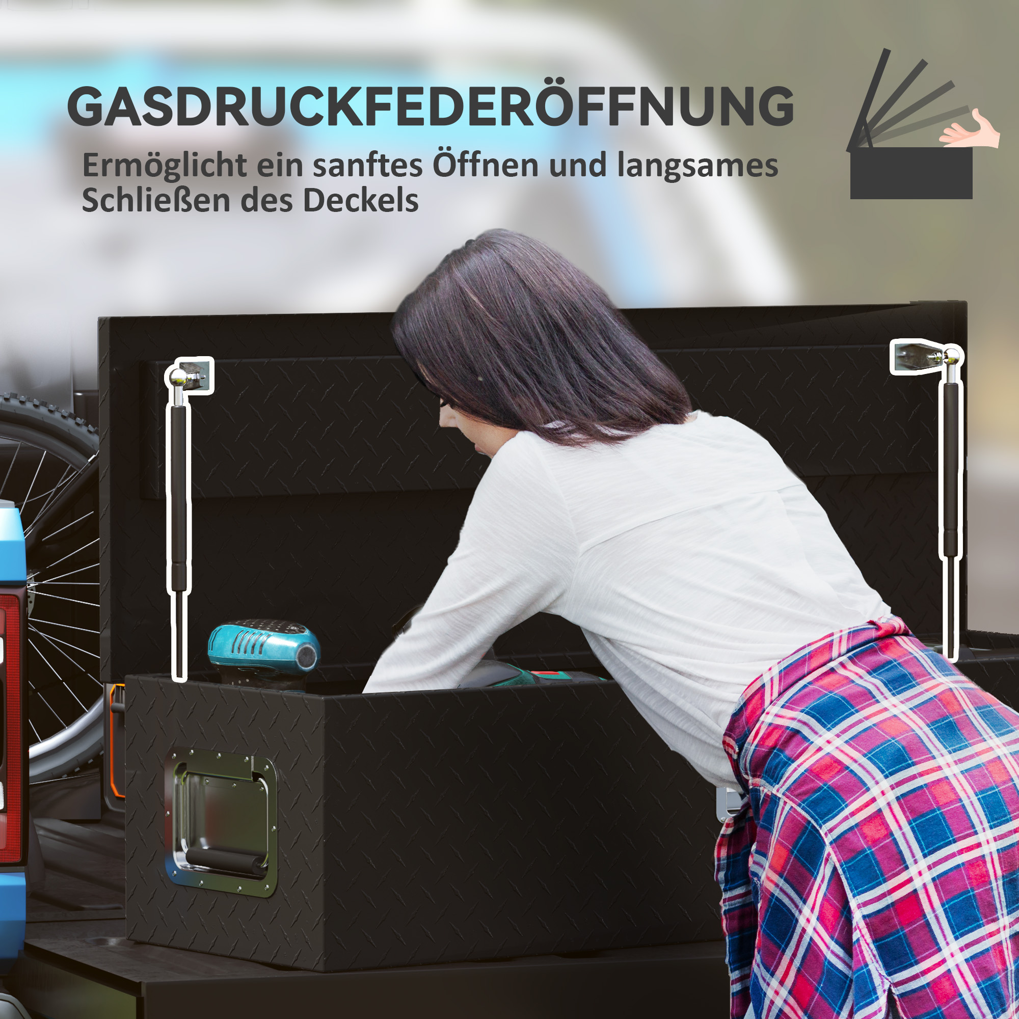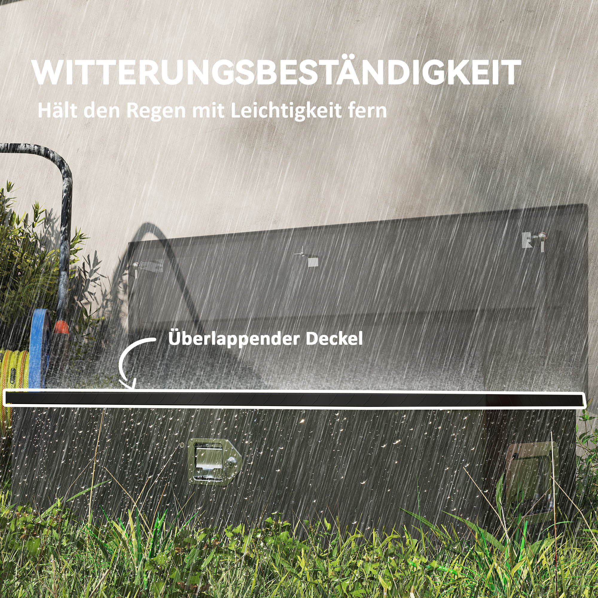 Suchen Sie eine praktische Aufbewahrungslösung für unterwegs? Die robuste HOMCOM Transportkiste bietet dank Aluminium-Konstruktion und Wetterbeständigkeit optimalen Schutz für Ihre Gegenstände, Mit abschließbarem, großzügigem Design passt sie zu vielen Anhängertypen und ist unverzichtbar, um Ihre Ausrüstung sicher und organisiert zu verstauen,