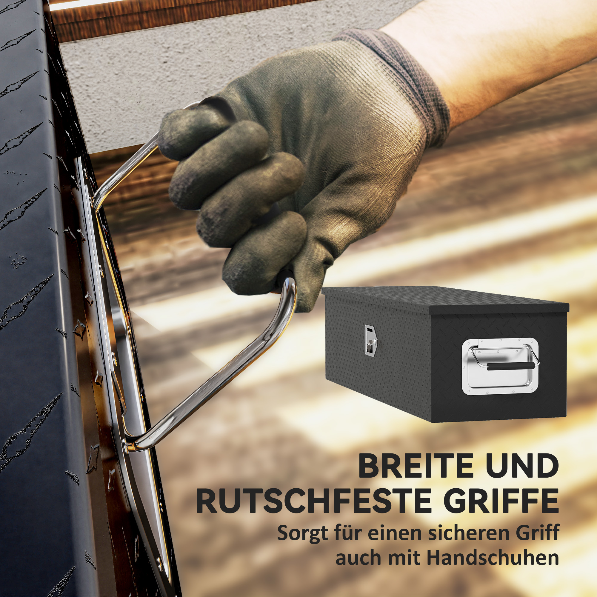 Stabile Aufbewahrungskiste aus Aluminium mit Seitengriffen, Schloss und Schlüsseln, Werkzeugkasten, 99 x 33 x 25,4 cm