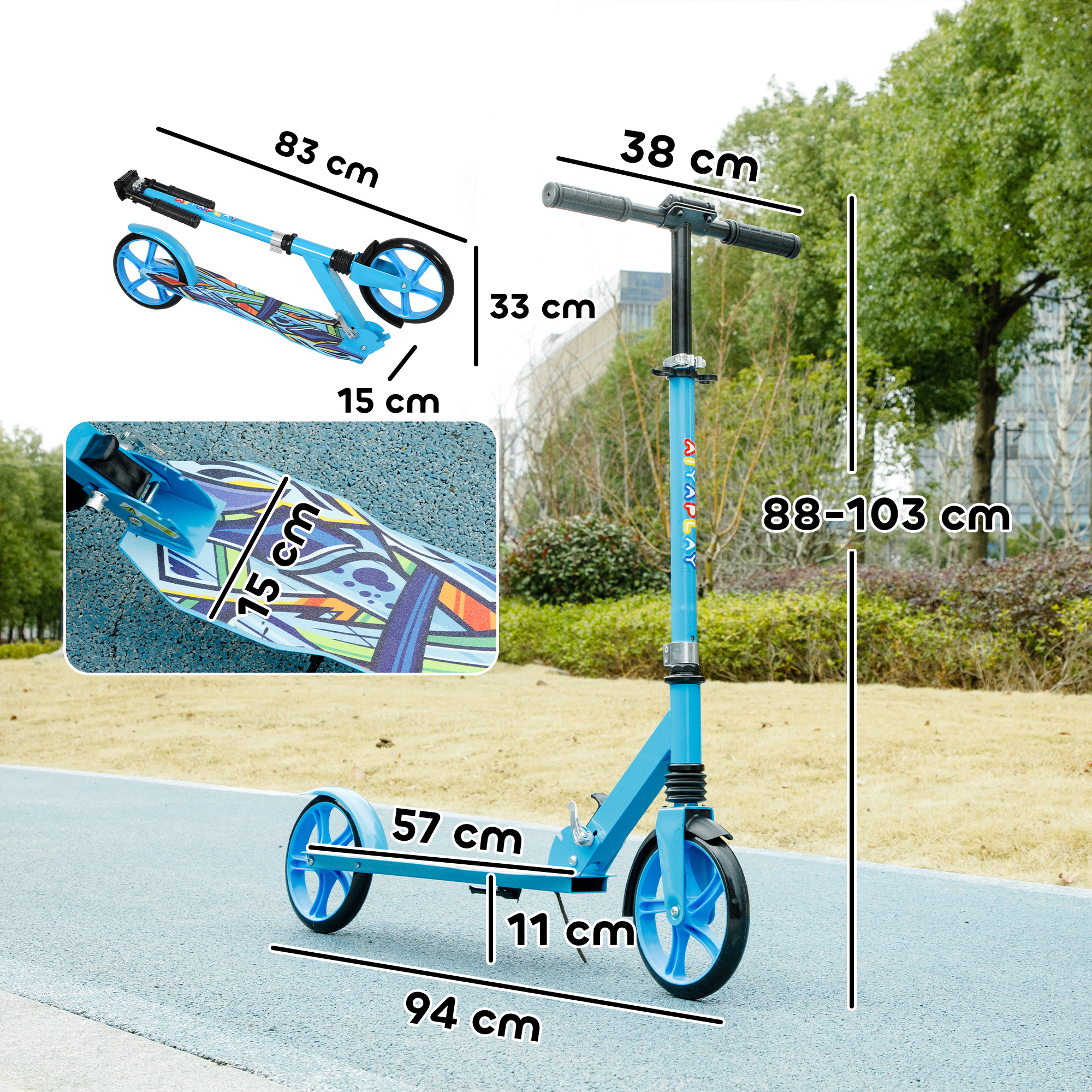 Tretroller, höhenverstellbar, Hinterradbremse, faltbar, 100 kg belastbar, Blau