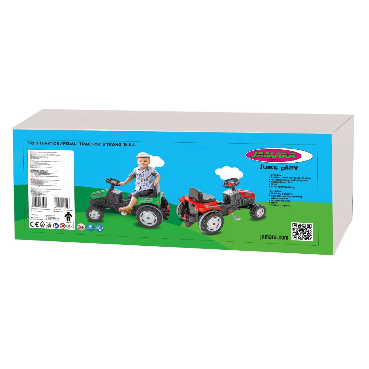 Die Trettraktoren von JAMARA erfreuen sich seit der Markteinführung großer Beliebtheit. Einfach aufsitzen und lostreten und schon kann die wilde Fahrt beginnen. Der Trettraktor Strong Bull in zwei kindgerechten Farben, hat ein leichtgängiges Lenksystem und einen verstellbaren Sitz und dann so über die Jahre mitwachsen und angepasst werden. An die praktische Anhängerkupplung am Heck können verschiedene Anbaugeräte angebracht werden z.B. der stabile Anhänger von JAMARA für den Strong Bull.