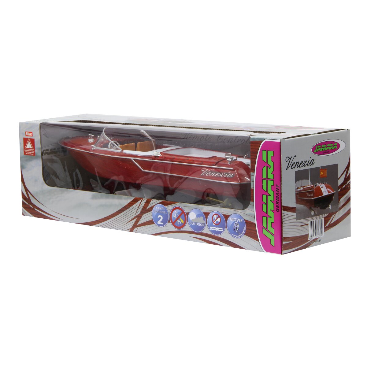 Sie wollten schon immer mal Kapitän einer schönen Motoyacht sein? Kein Problem. Mit der Venezia bekommen Hobbykapitäne genau das Richtige. Mit zwei kraftvollen Motoren kann die Venezia durch den heimischen Swimmingpool oder den Badesee pflügen. Eine aufwändig designte Nachbildung einer hochwertigen Holzoptik, eine Sicherheitsabschaltung und eine mit LED beleuchtete Fernsteuerung macht die Venezia für Kleine und Große gleichermaßen interessant.