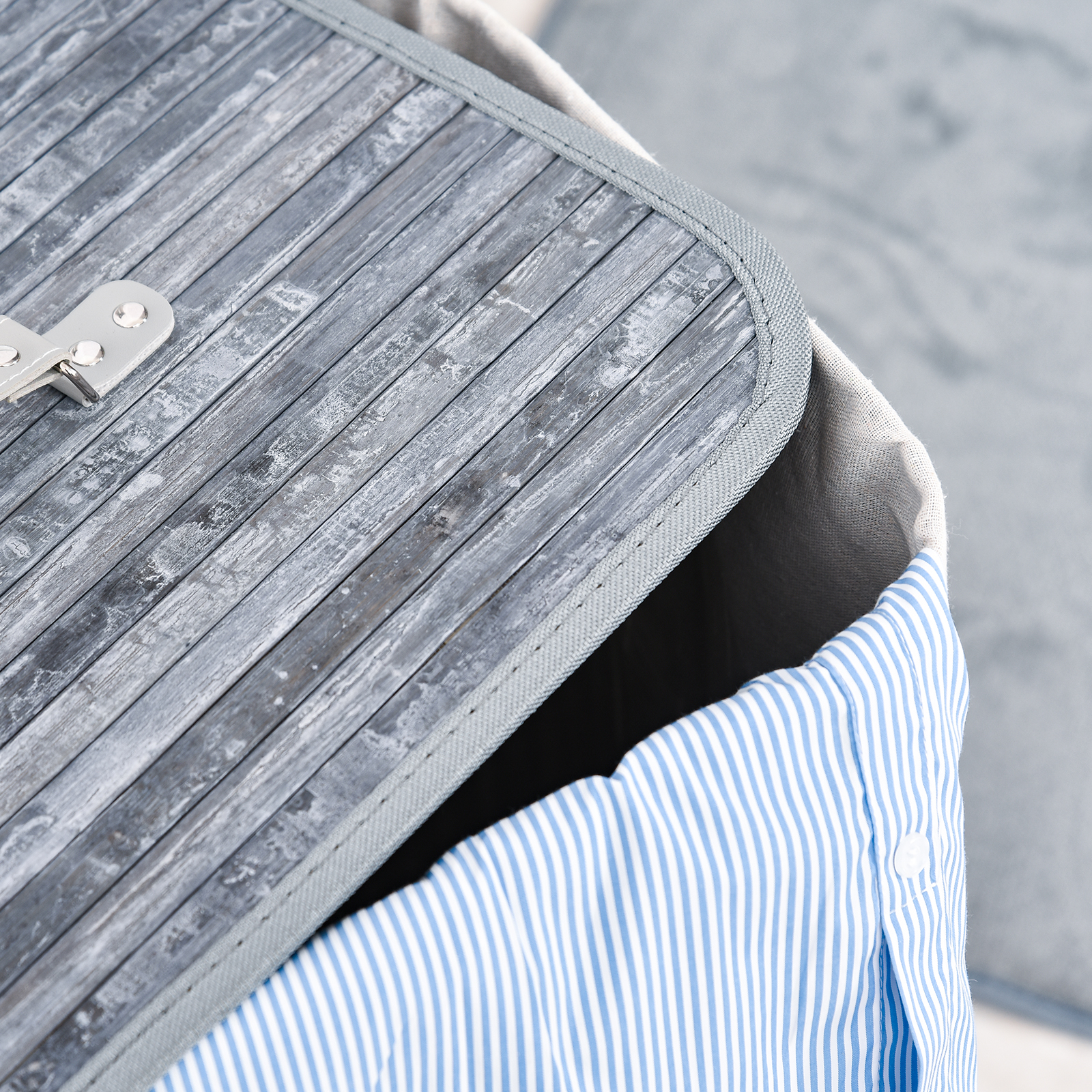 - - Material: Bambus, Wäschesack aus Segeltuch, Griffe aus PU
