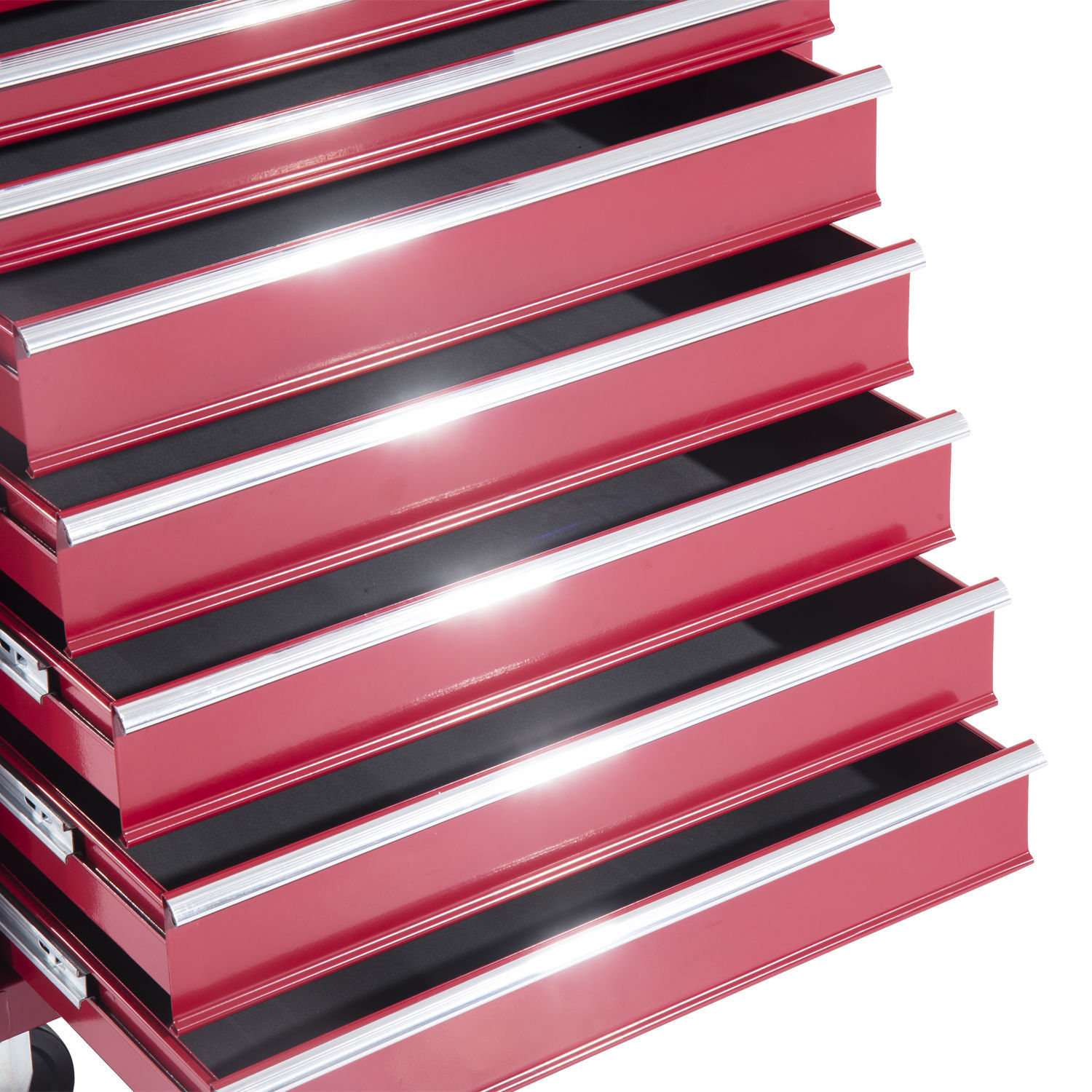 Der ideale Helfer für Heimwerker und professionelle Anwender, Der fahrbare Werkzeugwagen aus Stahlblech von HOMCOM bietet viel Stauraum für ihr Werkzeug, Dank der 4 stabilen Lenkrollen - 2 davon mit Feststellbremse - lässt er sich bequem und sicher bewegen, In den 16 Schubladen können Sie Ihr Werkzeug sicher und griffbereit verstauen,