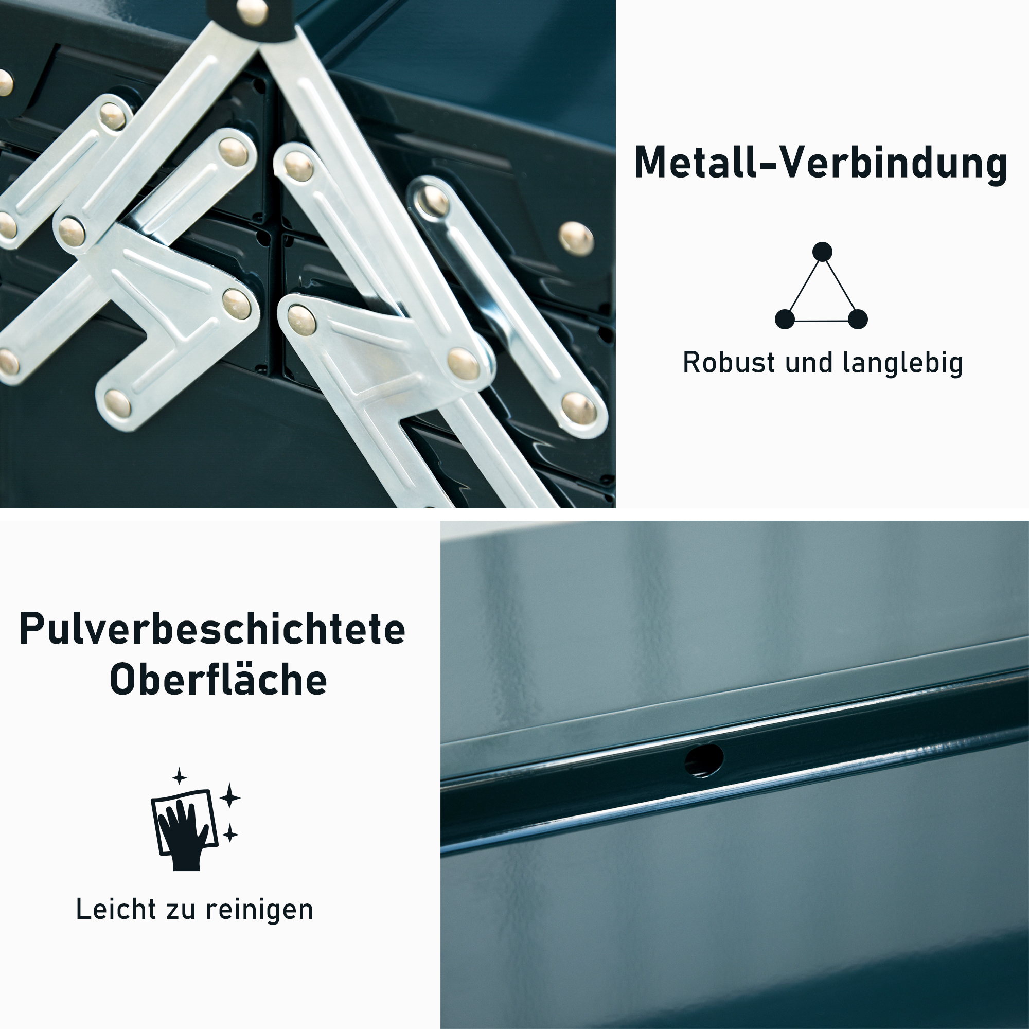 Werkzeugkasten Werkzeugkoffer Montage Werkzeugkiste leer platzsparend mit 5 Fächer aufklappbar stabil Stahl (SPCC) Dunkelgrün 45 x 20 x 34,5 cm
