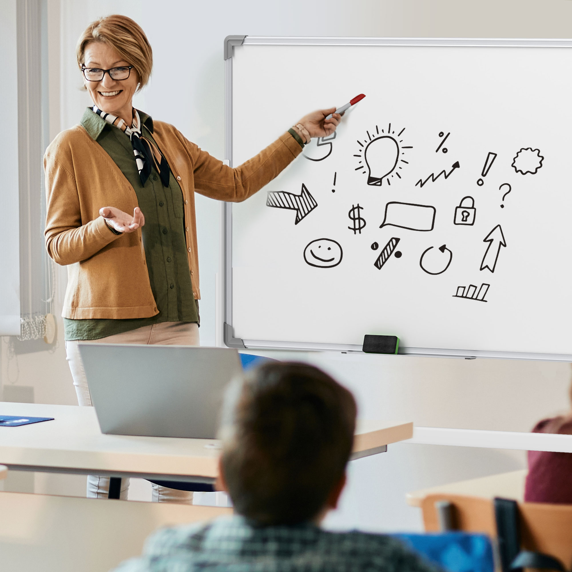 - - Das 120 x 90 cm große Whiteboard bietet viel Platz für Unterricht oder Präsentationen