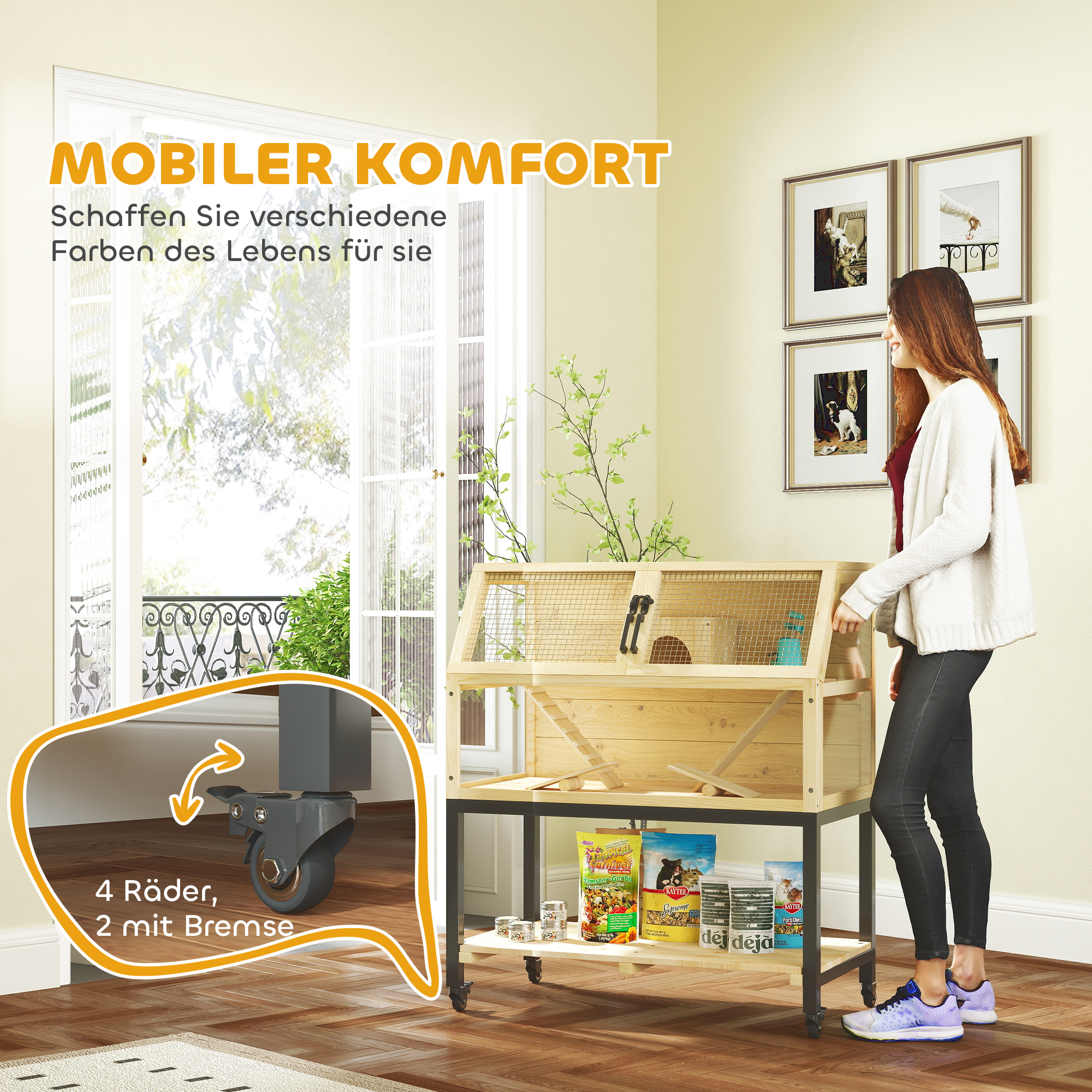 - Mobile Bequemlichkeit: Mit vier leichtgängigen Rädern ausgestattet, lässt sich dieser Nagerkäfig mühelos in Ihrer Wohnung verschieben
